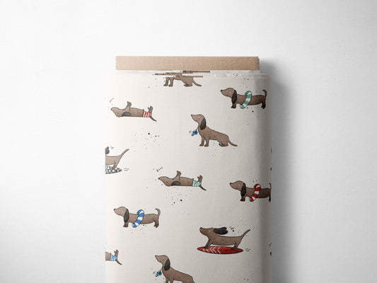 RESTSTÜCK 150cm Bio-Sommersweat „Herbstwaschbären“, Eigenproduktion
